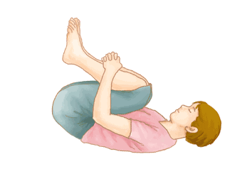 躺在地上,兩腳屈膝,兩手環抱住小腿,抬頭收腹拱背,身體往后從尾椎、腰椎、胸椎一節一節碰觸地面,如此前后滾過來滾過去。要看自己身體狀況,做不到不能太勉強。