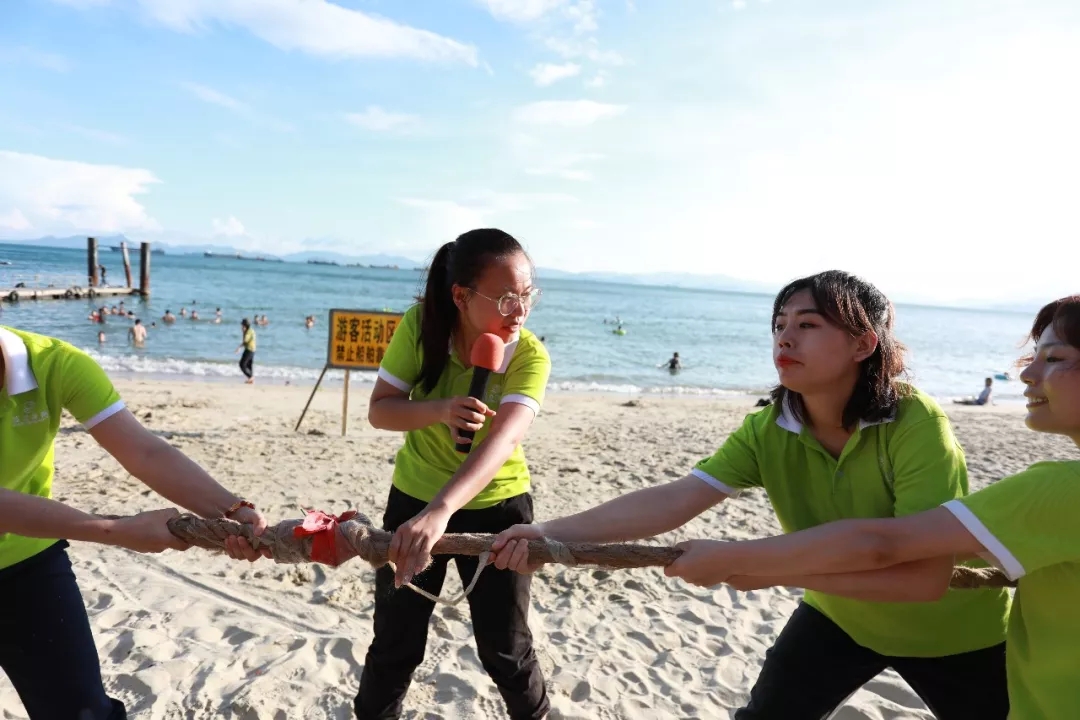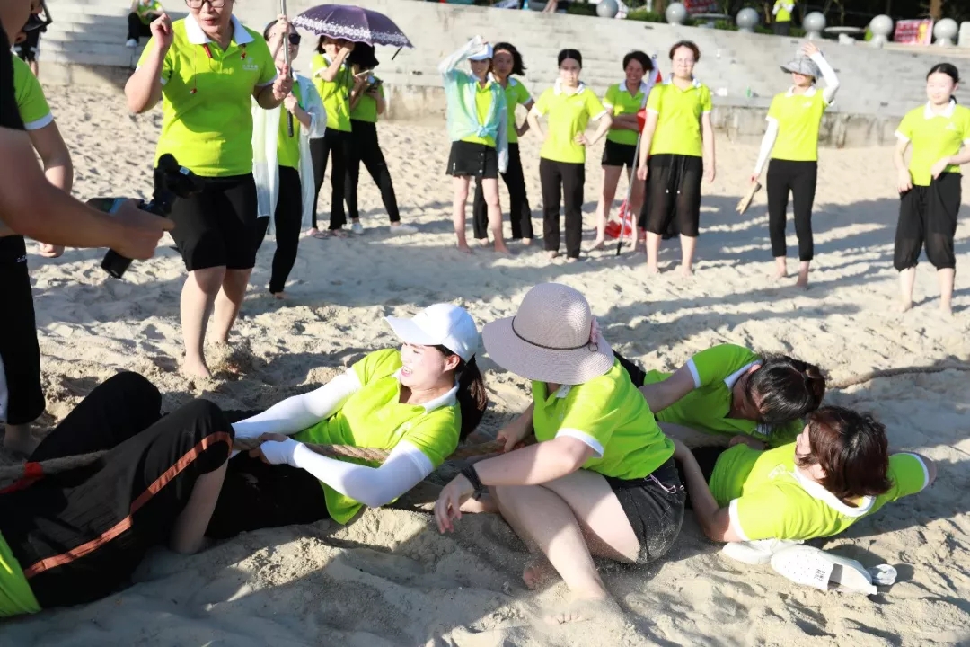 藍天白云,水清沙幼,大概是每一個人對于海灘的美好幻想。在這樣一片美麗的沙灘上,游戲活動必不可少,拔河游戲、穿越呼啦圈、沙灘排球紛至沓來。家人們個個使出渾身解數,力爭第一。相信此刻,所有的瑣事已經被拋至九霄云外,剩下的唯有開心了吧!