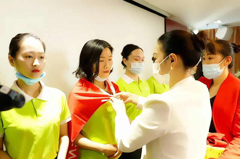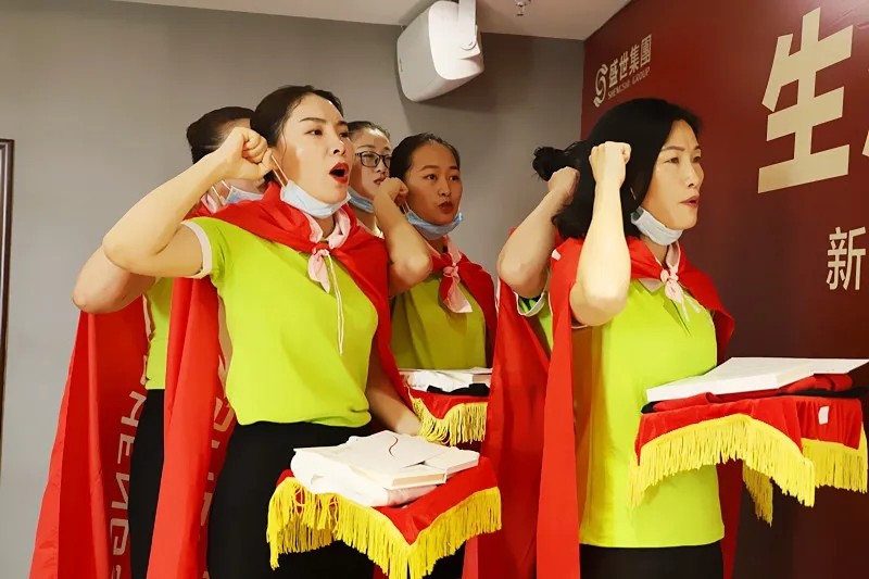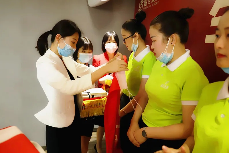 儀式上,盛世集團(tuán)何總、吳董為新家人授予入職戰(zhàn)袍、戰(zhàn)徽、戰(zhàn)旗。現(xiàn)場吳董致辭歡迎,給予新成員強(qiáng)大的力量。