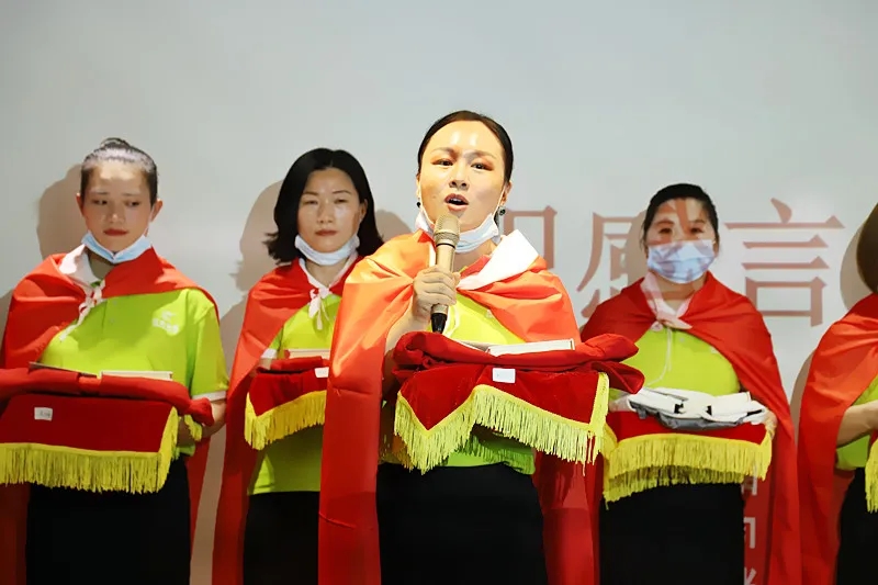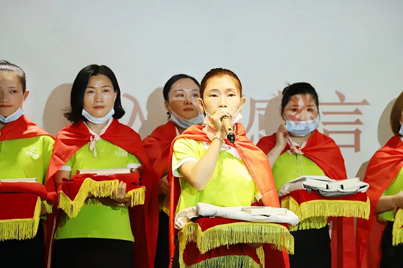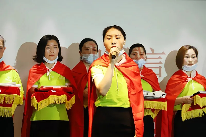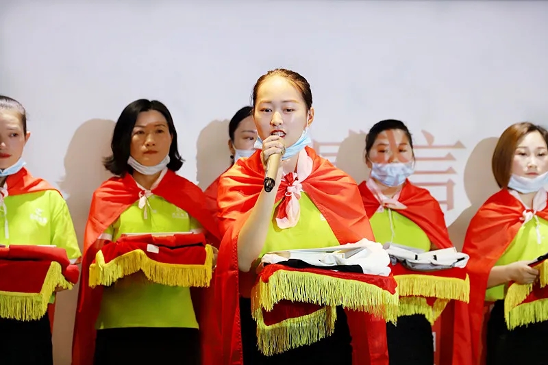 緊接著,臺(tái)上的新成員進(jìn)行莊嚴(yán)的入職宣誓,身披戰(zhàn)袍猶如即將奔赴戰(zhàn)場的戰(zhàn)士,氣勢磅礴的發(fā)言讓現(xiàn)場所有家人為此熱血沸騰。此刻,我們將把職業(yè)當(dāng)事業(yè),把使命當(dāng)生命,把信念當(dāng)信仰,把企業(yè)文化融入骨髓為盛世未來奮斗終生!
